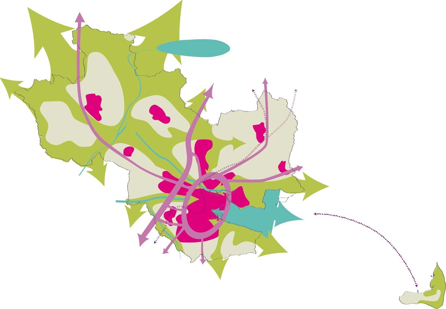 - Den grønne og blå struktur består af de overordnede natur- og landskabselementer, der skal bevares og udvikles.