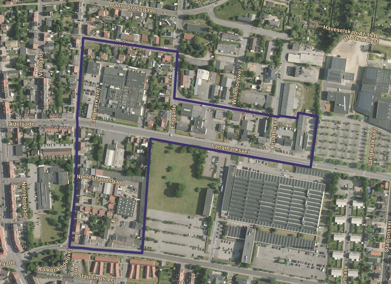 Vejforløbet kommer til at blive anderledes efter forlægningen af Langmarksvej. En udviklingsplan skal derfor belyse hvordan trafikken fra området ønskes forbundet på det overordnede vejnet. Udviklingsplanen skal også være med til at sikre, at nyt byggeri får en skala, der er tilpasset det omkringliggende kvarter. Det vil sige 1 til 2 etager. Det lave byggeri vil samtidig sikre, at det ikke påvirker landskabet omkring Nørrestrand negativt.