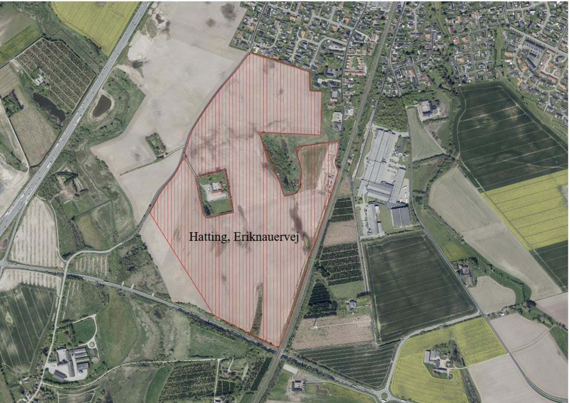 Det skal undersøges, om der evt. kan skabes en helhedsorienteret afskærmningsløsning, der kan tilgodese støjdæmpning i større dele af Hatting. Udformning og placering af den nødvendige støjafskærmning skal ud over at tilpasse sig landskabs- og naturbeskyttelsesinteresser, også tilgodese bokvaliteten i det nye boligområde.