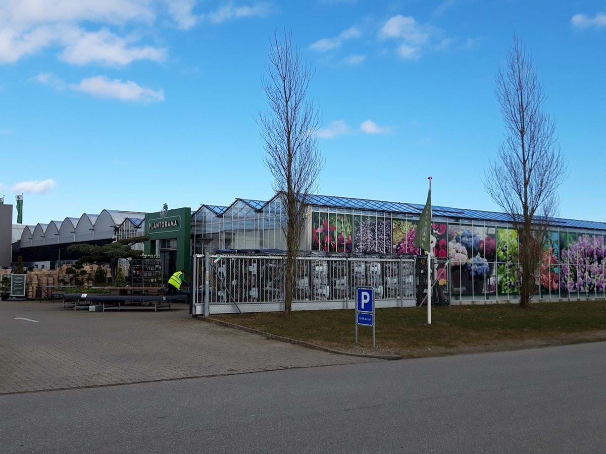 Billedet viser et plantecenter, der er en butik med særlig pladskrævende varegrupper.