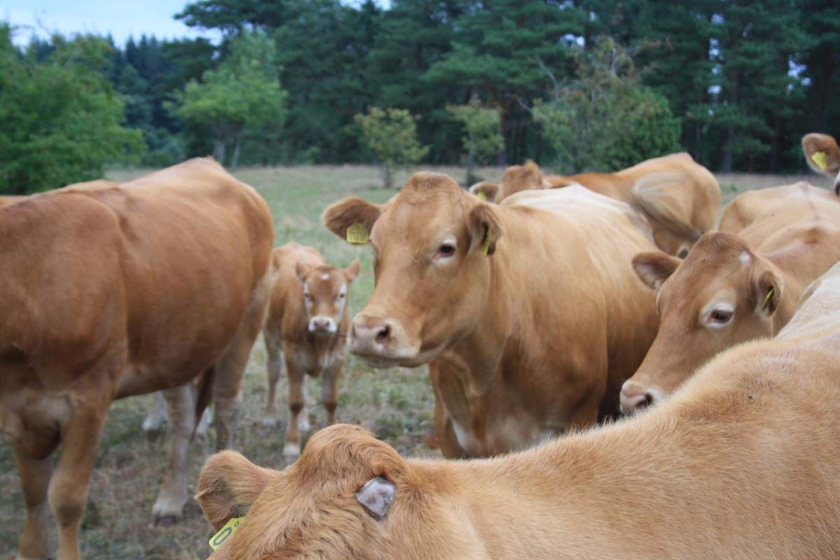 Billedet viser køer på græs.