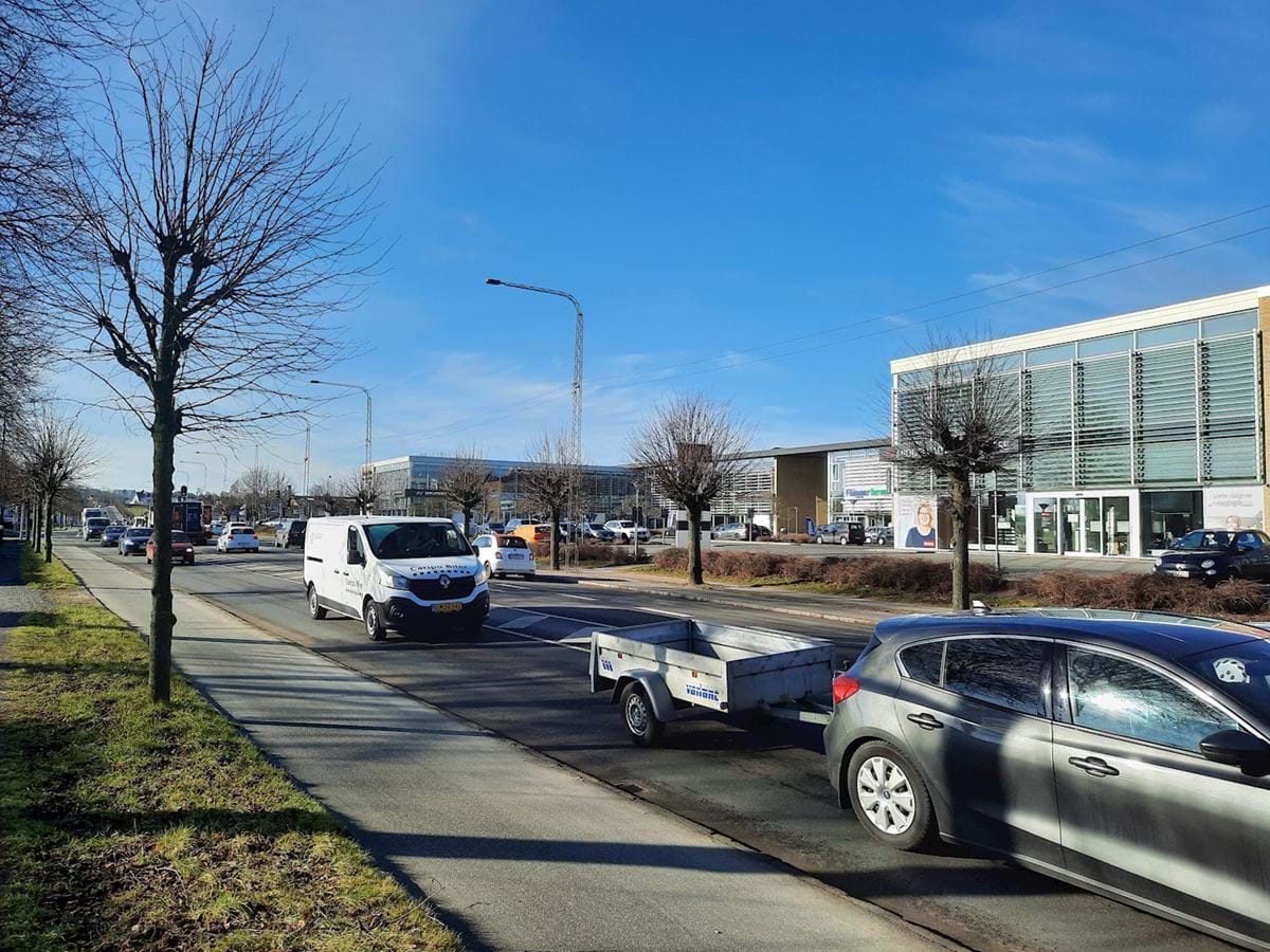 Billedet viser trafik på Høegh Guldbergs Gade i Horsens.